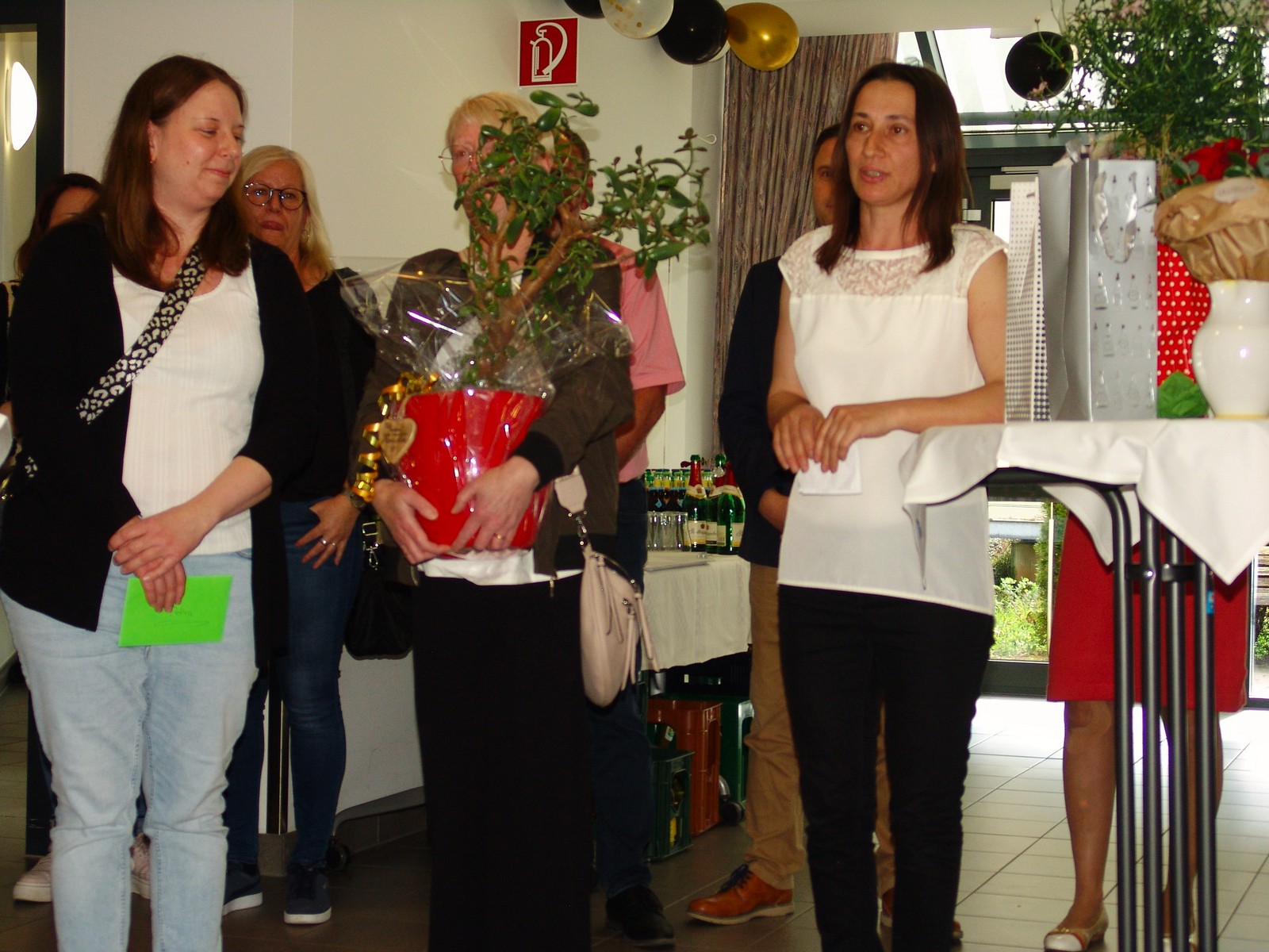Montag 28. April 2025 Verabschiedung von Petra Karrenführ als Pflegedienstleiterin Nach 17 Jahren Pflegedienstleitung wurde Petra Karrenführ in den wohlverdienten Ruhestand verabschiedet. Bürgermeister Schmidt, Einrichtungsleiterin Tanja Herrman, sowie Heimleiter a.D. Heinrich Dietmann würdigten ihr großes Engagement und ihre fachlich Kompetenz, aber auch ihre freundliche Art bei ihrer täglichen Arbeit. Fördervereinsvorsitzender Herbert Winkler dankte ihr für die vielen hochqualifizierten Fachvorträge, die sie bei den Mitgliederversammlungen gehalten hat und ihre Kollegen und Kolleginnen verpassten ihr zum Abschied ein "Michael Jackson Outfit". Niemals geht man so ganz! So bleibt uns Petra als Mitglied im Vorstand des Fördervereins Städti-sches Altenpflegeheim St. Elisabeth erhalten!