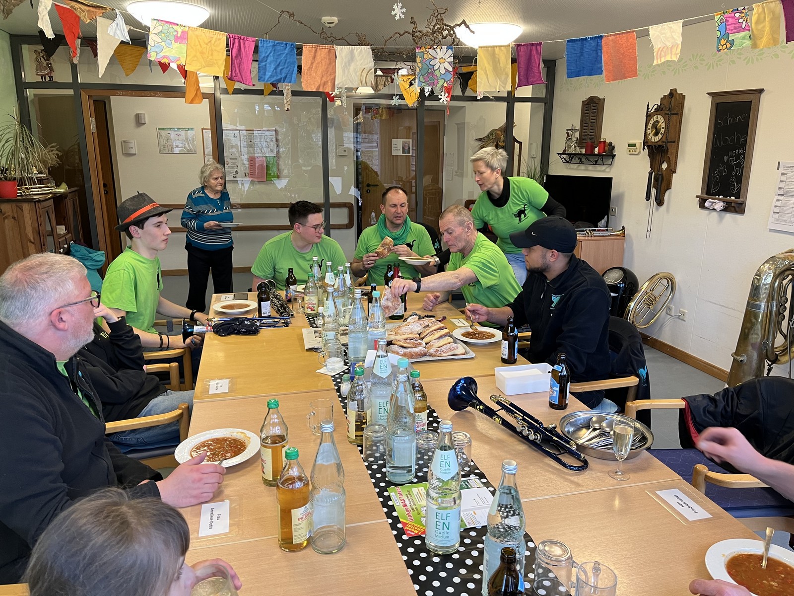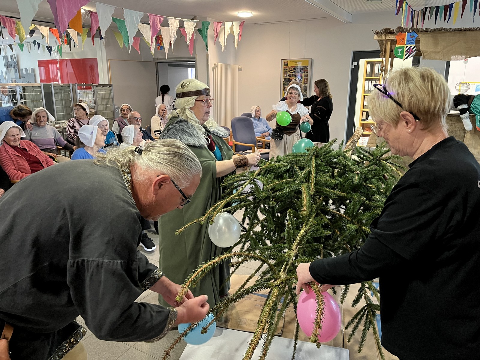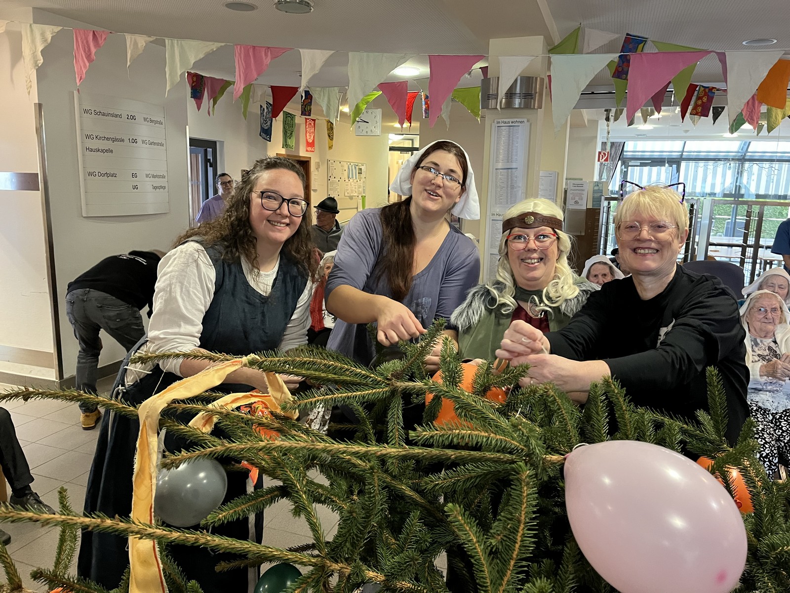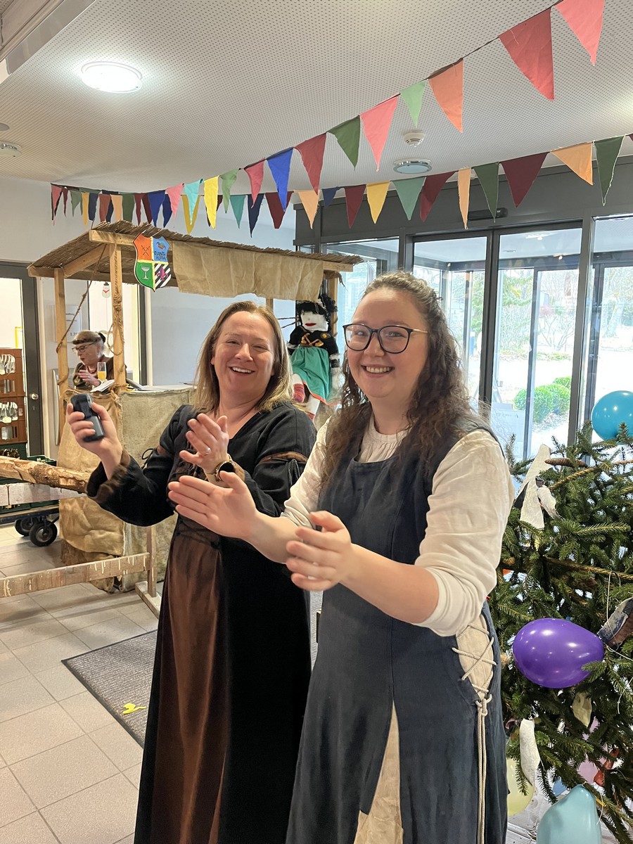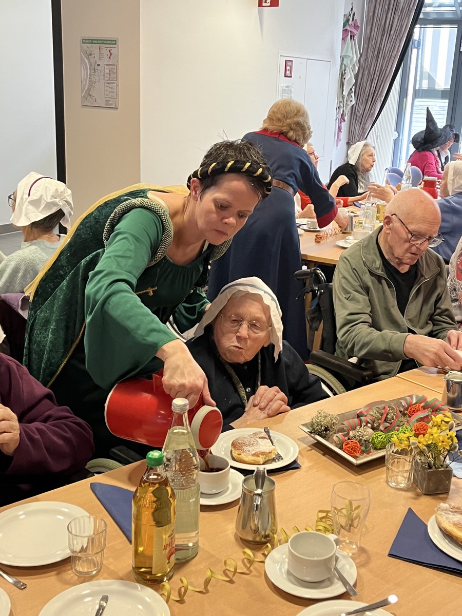 Höhepunkt war am Nachmittag der traditionelle Hausball, der unter dem Motto "Mittelalter" stand. Für eine fröhliche Stimmung und gute Unterhaltung sorgte das Musikduo SECONDHANDS. Ein Höhepunkt war der mittelalterliche Tanz der Mitarbeitenden. Zum Abschluss kamen die Musikanten der Katzenmusik zu Besuch. Ihre mitreißende Musik rundeten den unvergesslichen Tag voller Frohsinn, Musik und närrischer Tradition ab.