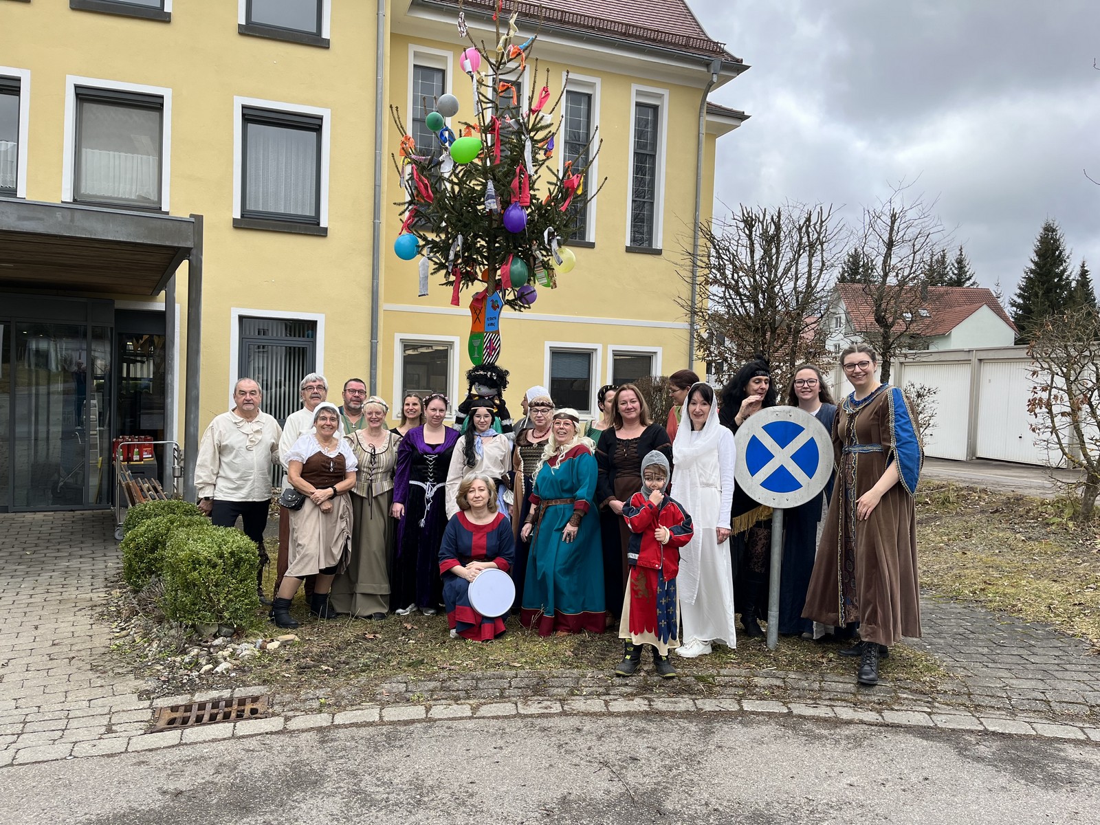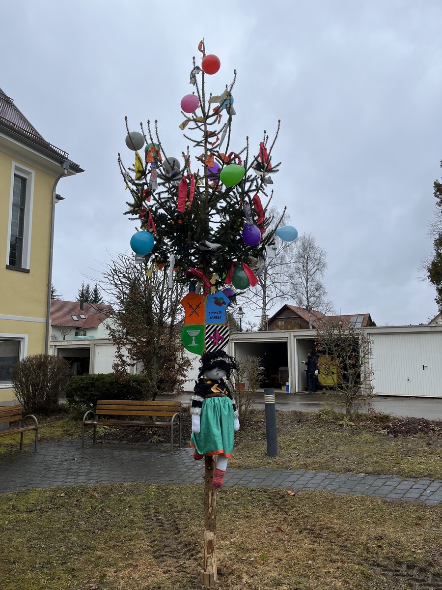 Die Fasnetsfeier begann schon am Morgen mit dem Schmücken des Narrenbaums, der anschließend mit Singen und Schunkeln vor dem Haus aufgestellt wurde.