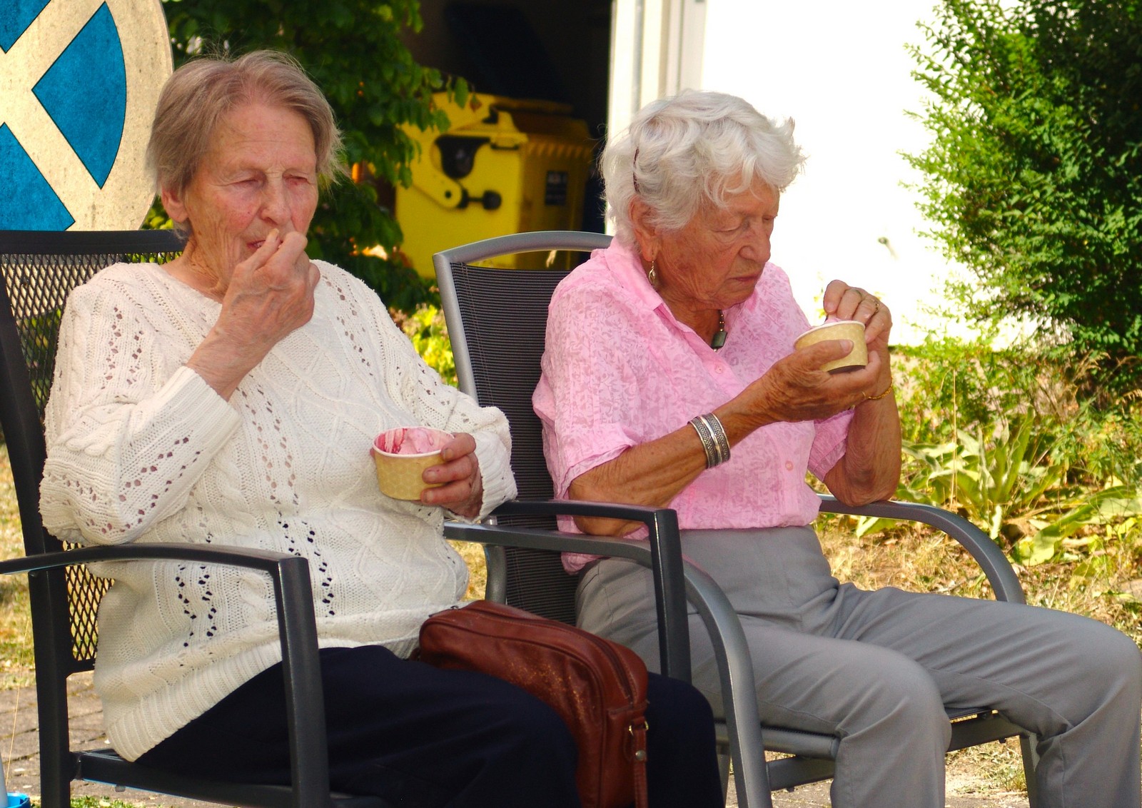 Donnerstag, 14. August 2025 Bewohnerinnen und Bewohner, die Tagespflegegäste sowie das Personal wurden vom Förder-verein zum Eisessen eingeladen. Mit der vertrauten Glocke hat der Eiswagen sein Kommen angekündigt. Fast wie in früheren Kindheitstagen durften alle ihr Eis direkt am Wagen bestellen und entgegennehmen. Man saß in gemütlicher Runde vor dem Haus und ließ sich das Eis schmecken.